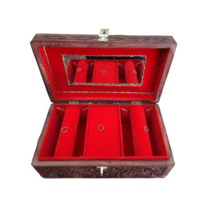 Rectangle Wooden Jewellery Box With Carvings 10x6 Inches quantity