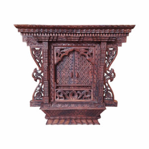 Big Brown Nepali Wooden Window Sliding Ankhi Jhyal 16 x14 Inch