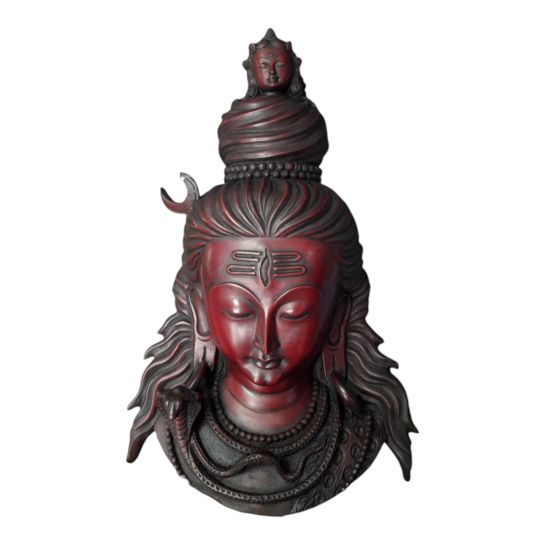 Red Resin Nepali Shiva Mahadev Head Mask Wall Mounted 10 Inches Wall Hanging Decor