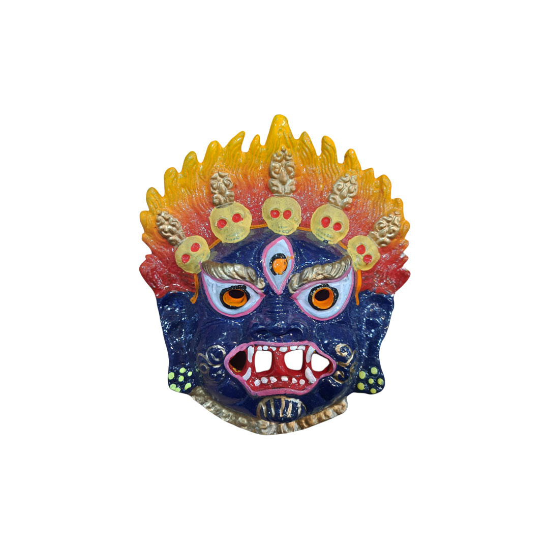 Blue Bhairav Wall Hanging Mask – Handcrafted Metal Mahakala 5 Inch Bhairab
