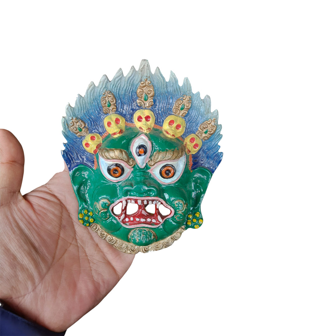 Green Metal Bhairab Mask Wall Hanging – 5 Inch Mahakala Decor Bhairav