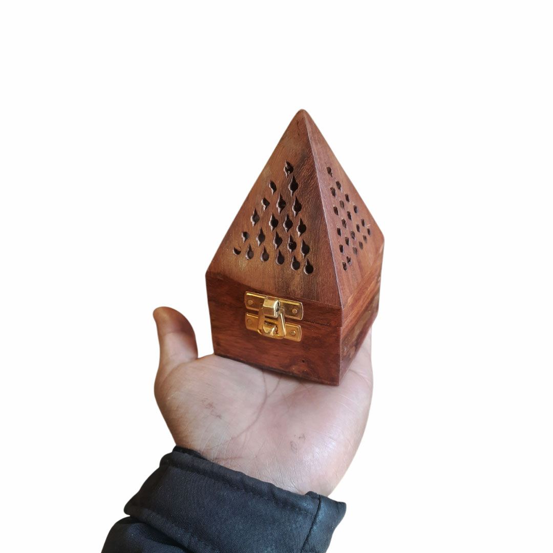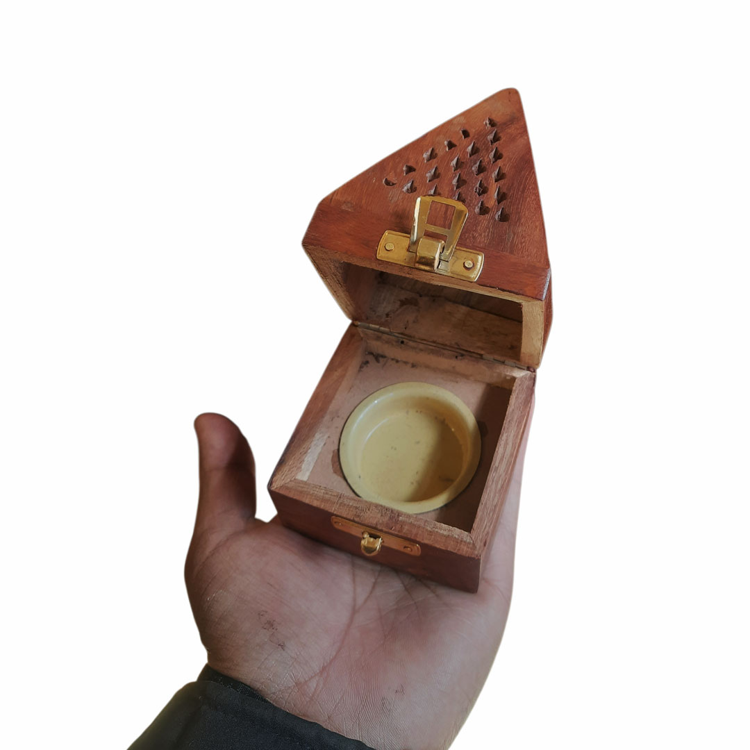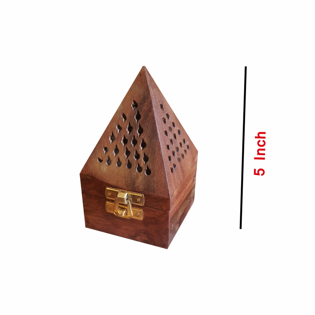 Handcrafted Wooden Pyramid Incense Holder & Bakhoor Burner, 5 Inch Nepal