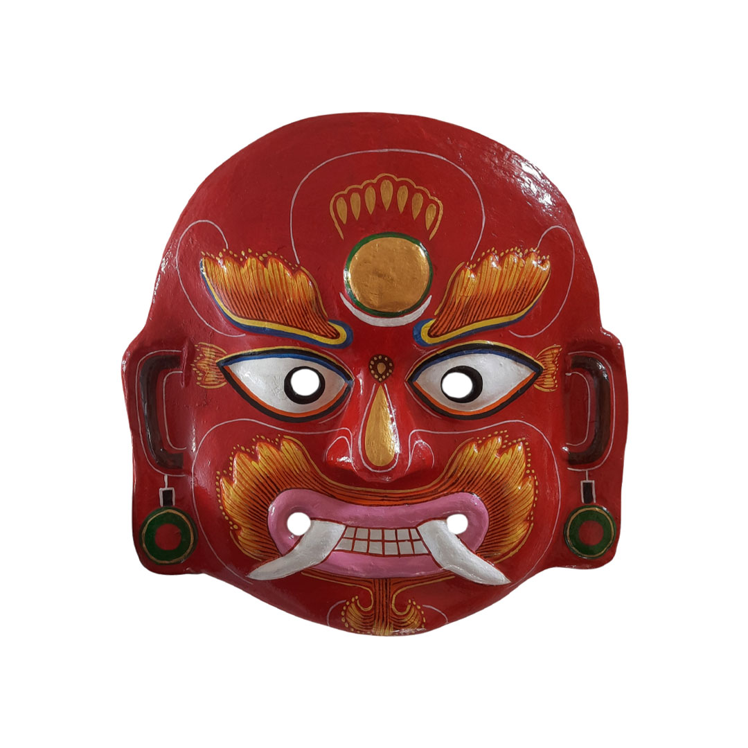Nepali Lakhe Mask Wall Decor – 11-Inch Handmade Clay & Paper Mask in Vibrant Reddish Colors