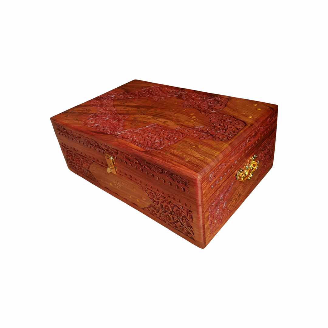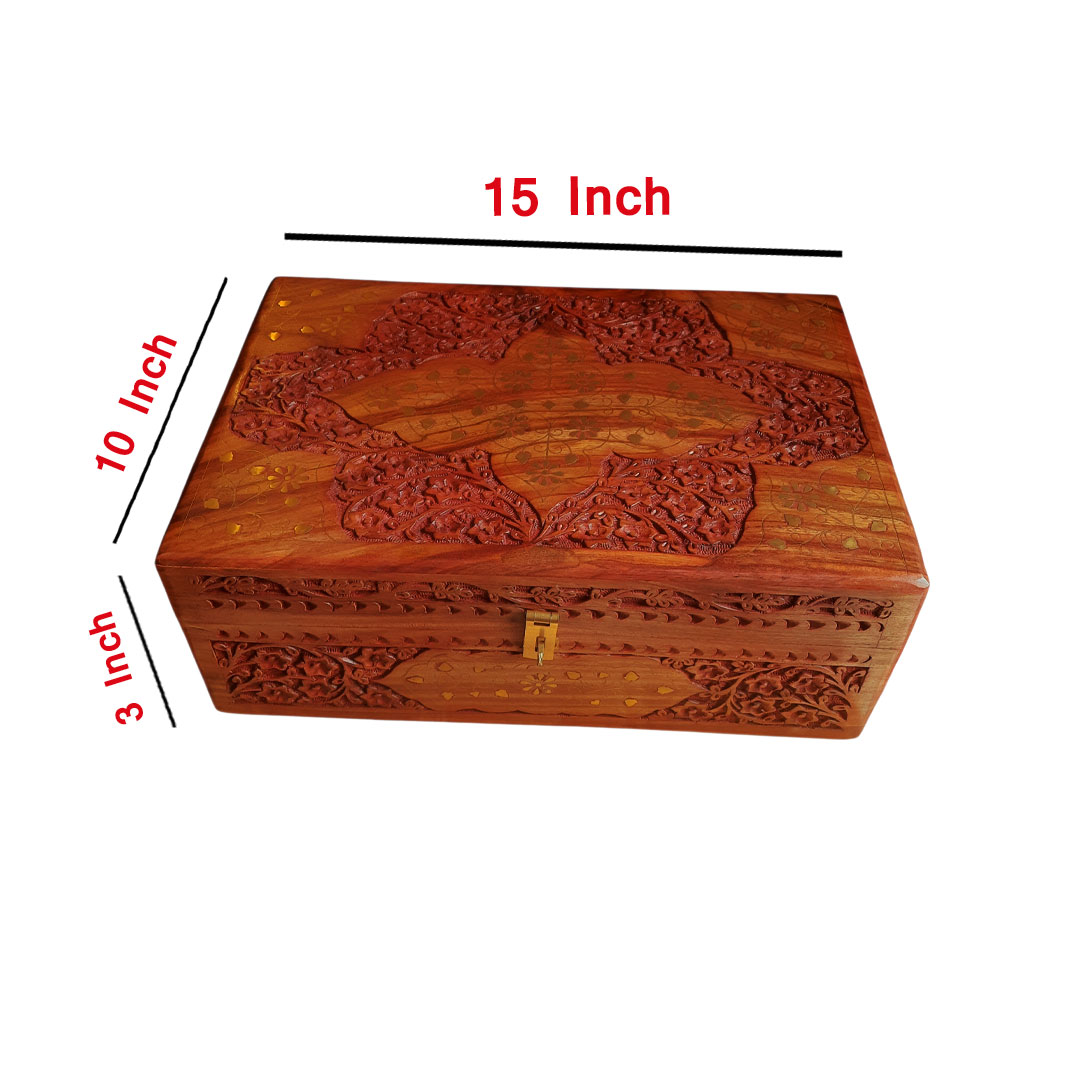 Large Wooden Jewellery Box with Brass Carving – 15×10 Inch Nepal