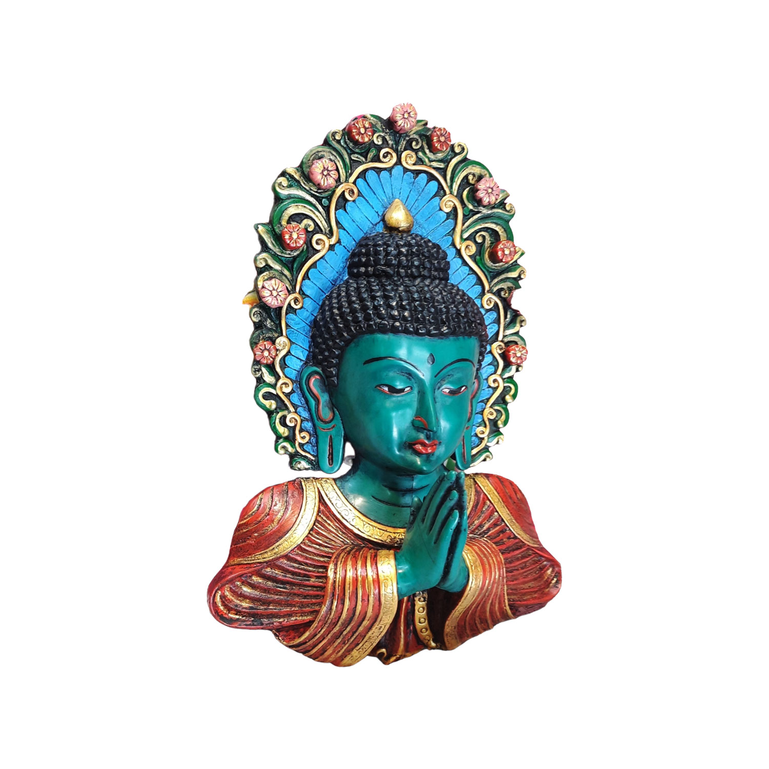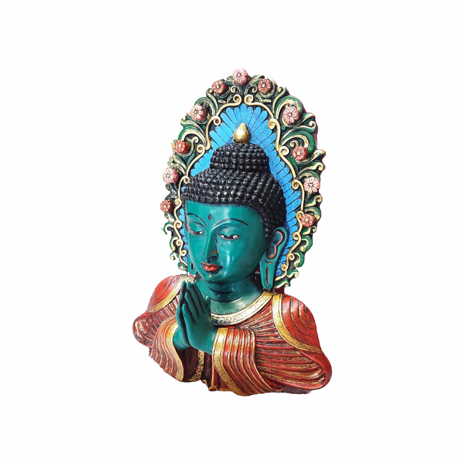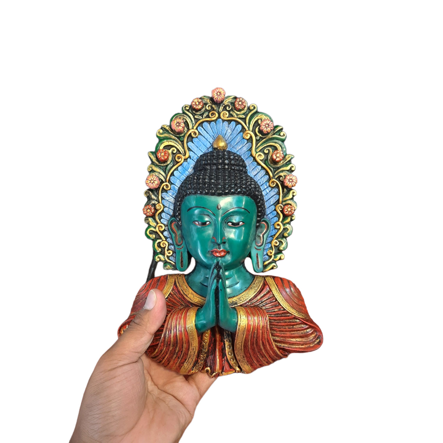 Namaste Buddha Head Mask Colorful Green 10 Inches