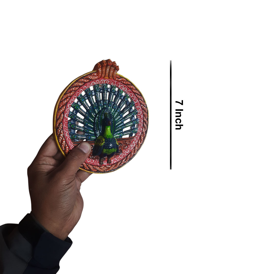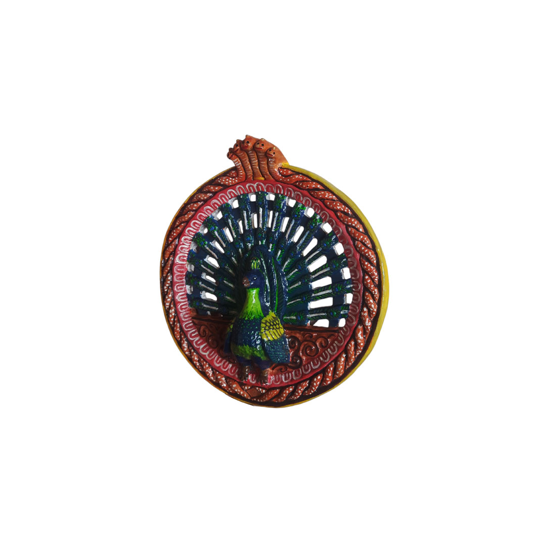 Round Pottery Colourful Teracota Peacock Window 7 Inch