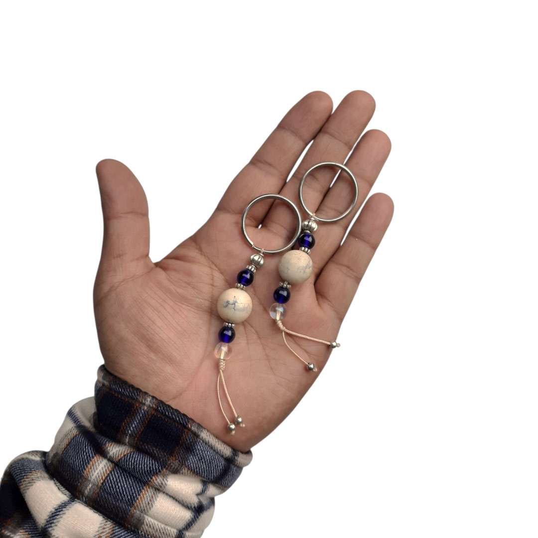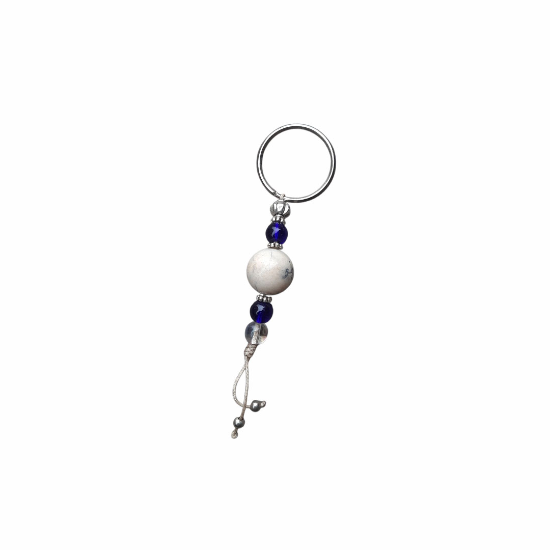 Round White Stone Ball Keychain Set Or Keyring