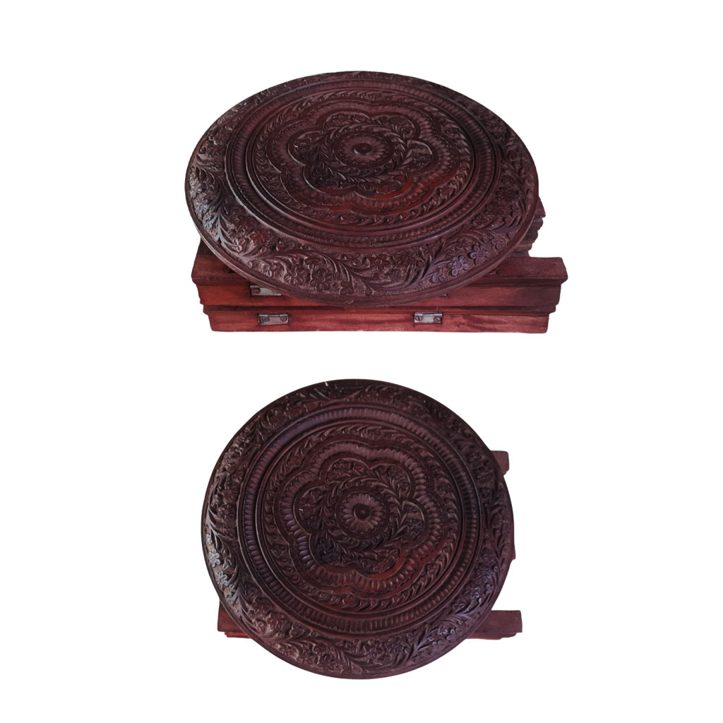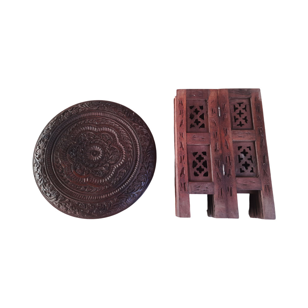 Wooden 12×12 Inch Fully Carved Folding Table Nepal