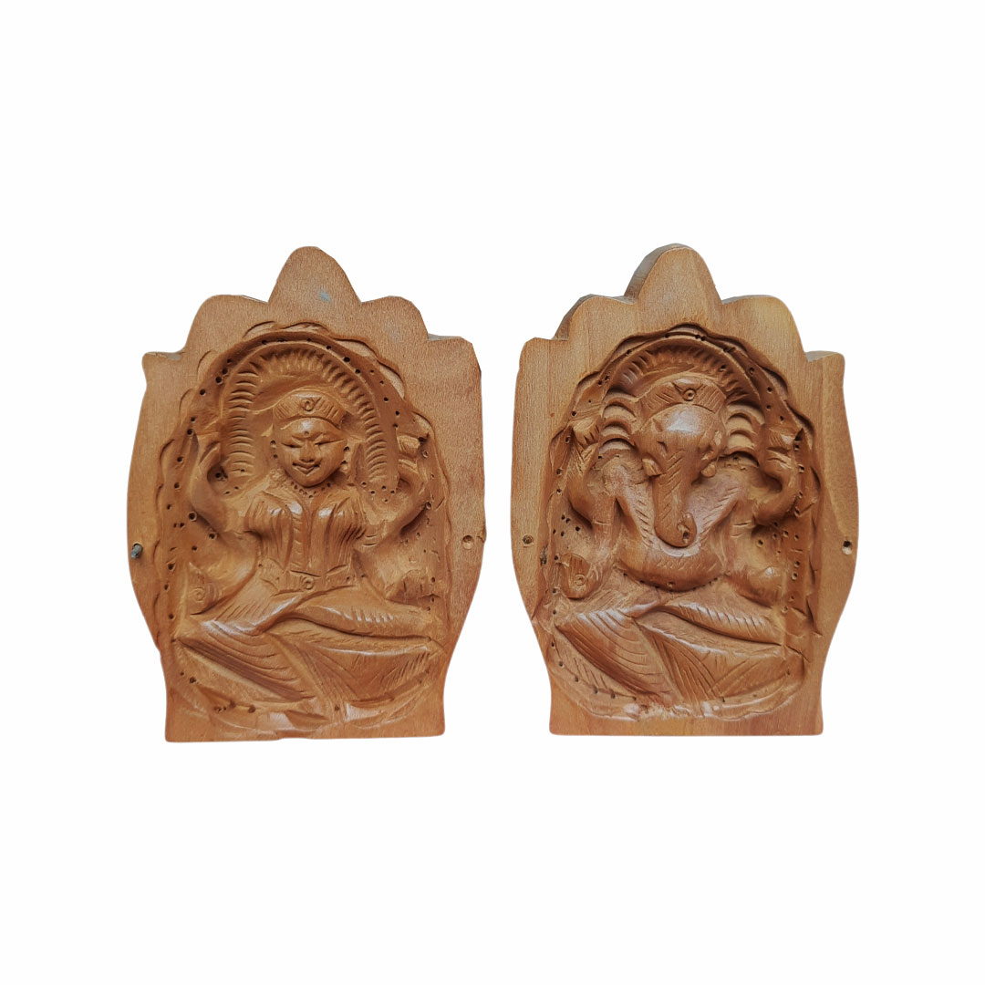 Wooden Ganesh And Laxmi statue carved inside hand folding