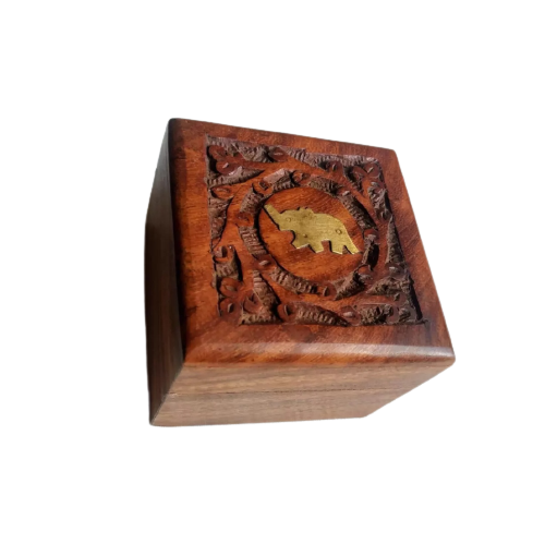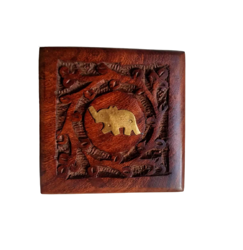 Wooden Square Box 3×3 Inch With Elephant Design In Nepal
